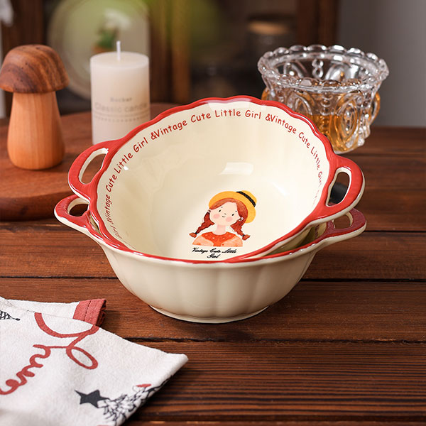 Двойные ручки удобны для держания, а кружевной контур и ретро-иллюстрации с изображением девочек подходят для русских густых супов и рагу. Керамика хорошо сохраняет тепло, поэтому она идеально подходит для подачи горячего супа на семейном обеде. Легко моется, имеет оригинальную форму, не занимает много места при складывании, добавляет уюта русскому столу, практична и красива, а также создает теплую атмосферу во время обеда.