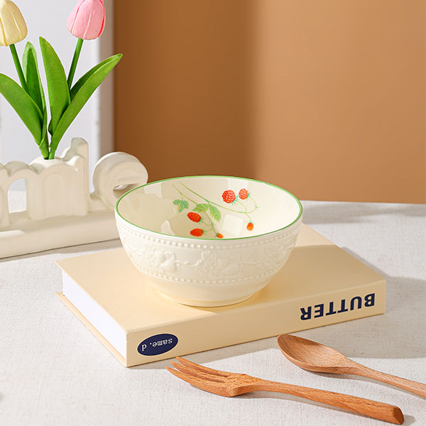 Идеально подходит для русских соусов, гарниров или в качестве детской миски. Изготовленная из высококачественной керамики, она безопасна, долговечна и легко моется. Использование её для хранения еды — это как «сосредоточение» клубничной грядки в миске, добавляя немного сладости русским блюдам и делая каждый кусочек романтичным.