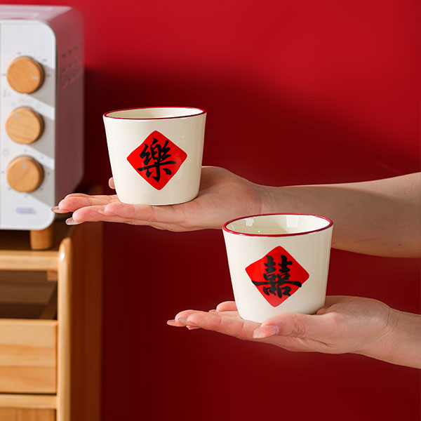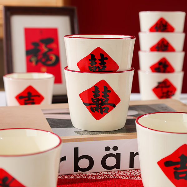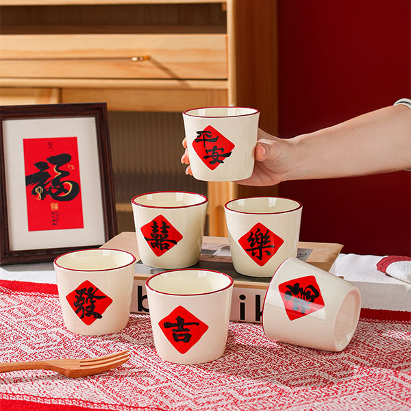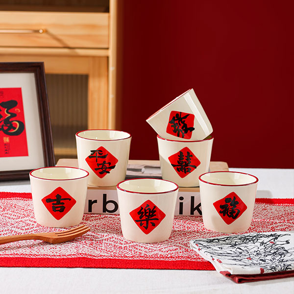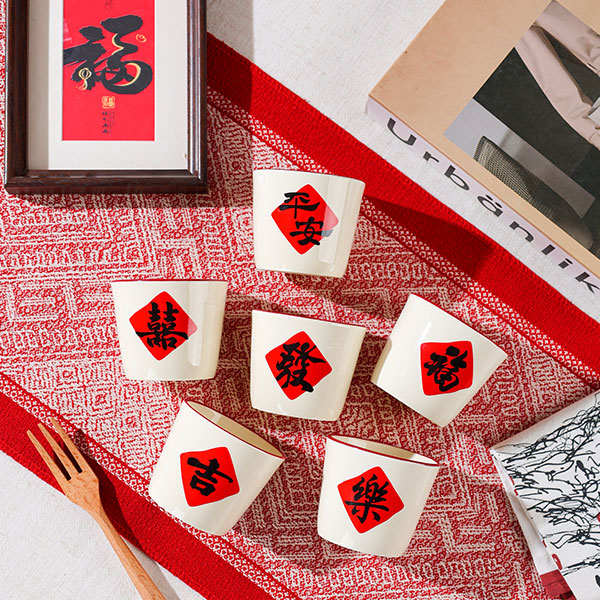 На чашках нанесены китайские иероглифы «мир», «радость», «счастье» и другие благоприятные символы, которые передают восточные пожелания и сразу же создают праздничную атмосферу за столом.